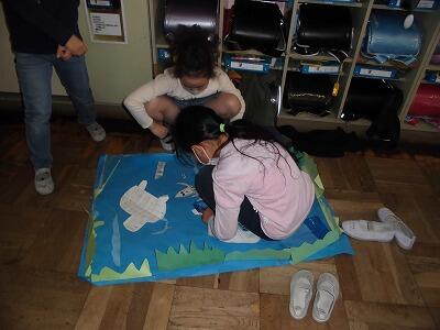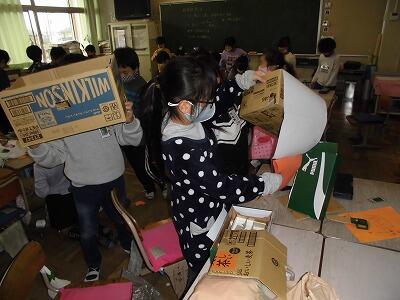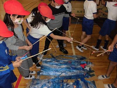 2年生は「遊びランド」にむけて、景品を作ったり、遊びの道具を作成したり、各グループごとに頑張っています。