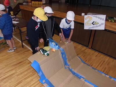 車でどこまでいけるかコーナー。自作の車でよーい どん!