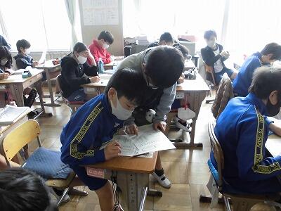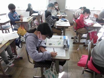 今日は、3・4年生の校内競書会がありました。今まで練習した成果をしっかり出せるよう、手本をよく見ながら真剣に取り組んでいました。今までで一番の字が書けたのではないでしょうか