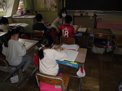 1年生は、算数の苦手部分を支援員さんや算数の先生と一緒に学習していました。