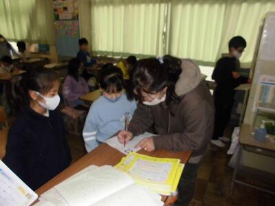 各学年、算数等の学習のまとめに入っています。わからない児童に先生達はしっかり教えています。