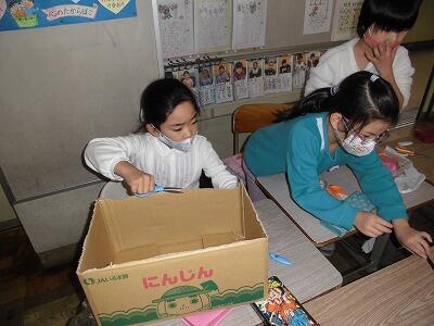 2年生は「遊びランド」の景品作りや道具の修正などに取り組み、1年生のために頑張っていました。