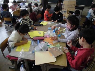 図工の作品作りの様子です。創造力を膨らませ、いろいろな工夫をしながら作品づくりにチャレンジしています。