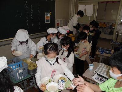 本日で、2学期の給食が終了となります。これまでとってもおいしい給食を作ってくれた栄養士さんや調理員さんありがとうございました。最終日はセレクトケーキがありました。チョコといちごのどちらかをセレクトし、クリスマス気分を味わいながら楽しんで食べました。食事中は、感染症防止対策のため前を向いて話をしないで食べることになっていますが、とてもおいしい給食が子ども達を笑顔にしてくれていました。