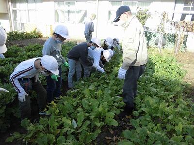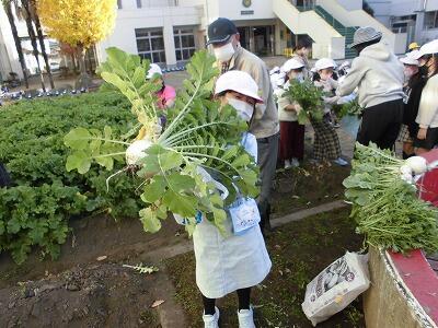 12月11日(金) 2年生 大根・かぶ収穫(学校ファーム)