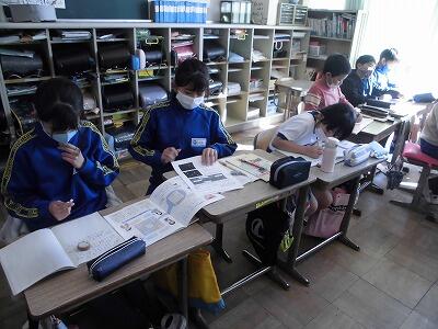 6年生の音読発表会に向けて、役割分担・読み方等を打ち合わせて練習しているようすです。