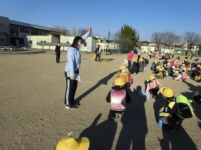 本日、一斉下校がありました。これまでの登校の反省をし、3学期に向けて安全で、仲のよい班で通学するために行っています。校長先生から安全に関するお話をいただき、班ごとに反省と今後に向けての確認をして下校しました。