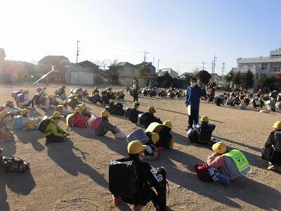 本日、一斉下校がありました。これまでの登校の反省をし、3学期に向けて安全で、仲のよい班で通学するために行っています。校長先生から安全に関するお話をいただき、班ごとに反省と今後に向けての確認をして下校しました。
