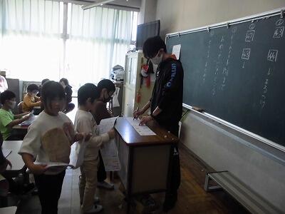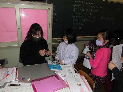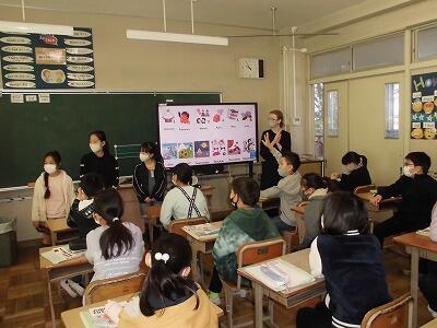 外国語の時間は、前に出て英語の問題に挑戦!みんなが積極的に答えていました。