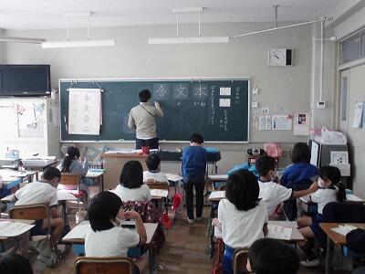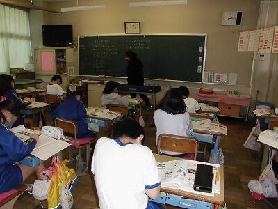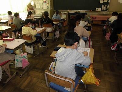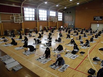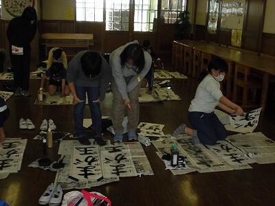 6年生は、小学校最後の競書会です。しっかり練習をし、この日のために頑張っていました。一字一字きちんとにじまないように拭き取りながら、誰もしゃべらない緊張感の中で作品に一生懸命取り組んでいました。