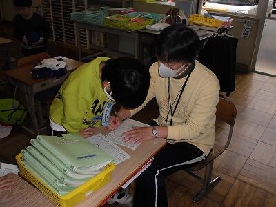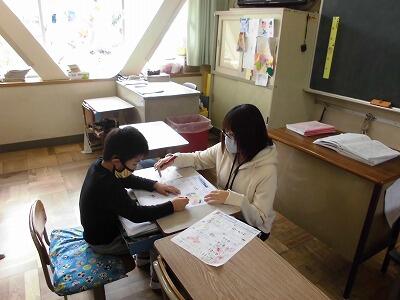1年生は、算数の苦手部分を支援員さんや算数の先生と一緒に学習していました。
