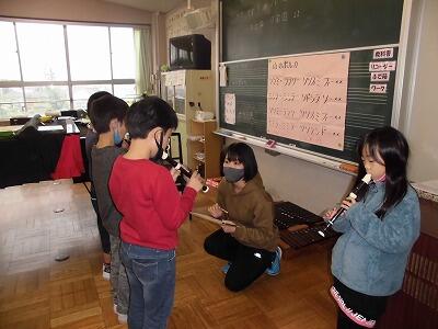 音楽の「リコーダーのテスト」の様子です。がんばれ!