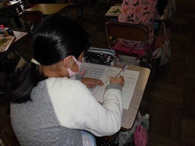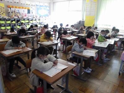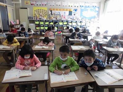 静かに集中してがんばっていました。とても静かな雰囲気の中、一番の字が書けた子が多くいました。
