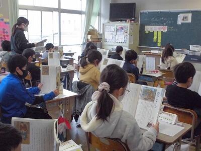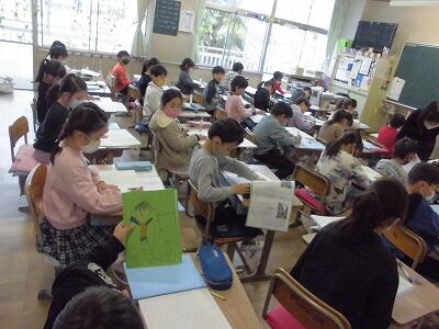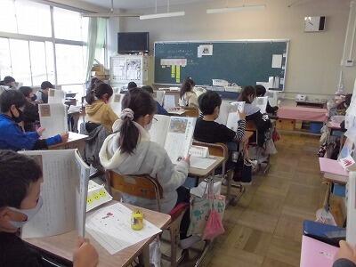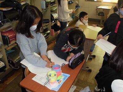 3年生の図工の鑑賞の時間には、友達のよかったところをワークシートにしっかり書くことができました。