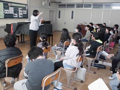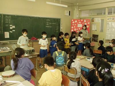 2年生の音楽では、音楽発表会を開催していました。グループごとに役割分担し、練習した成果を出すことができました。