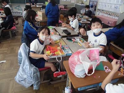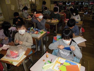 2年生は、今週に行われる、1年生との遊びランドに向けて景品作りを頑張っています。折り紙などで景品をつくり、1年生に喜んでもらうために頑張っています。