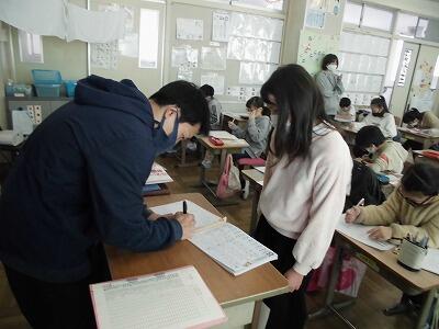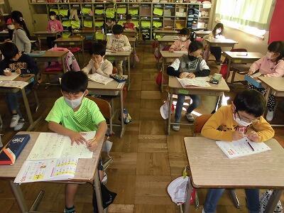 各学年、算数等の学習のまとめに入っています。わからない児童に先生達はしっかり教えています。