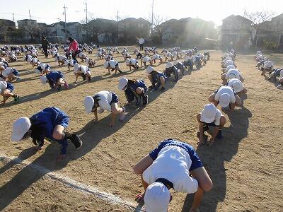 今日の朝行事で、2・4・5年生による体育朝会を行いました。体操のあと、ブリッジ、カエル倒立をしてから、各学年ごとの種目に取り組みました。