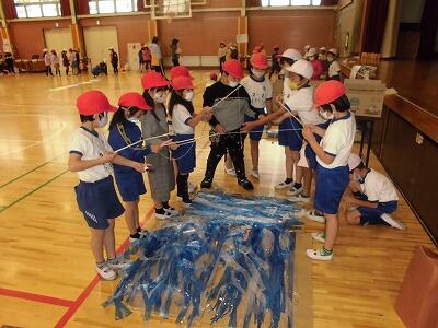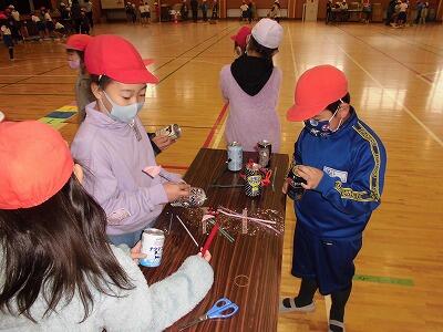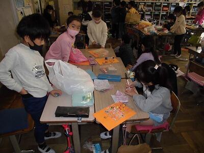 2年生は「遊びランド」の景品作りや道具の修正などに取り組み、1年生のために頑張っていました。