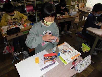 図工の作品作りの様子です。創造力を膨らませ、いろいろな工夫をしながら作品づくりにチャレンジしています。