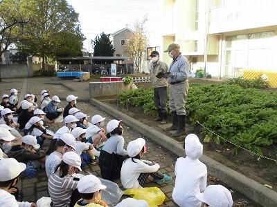 学校応援団の方から、大根やカブが一粒の小さな種からこんなに大きく育つことを話していただいた