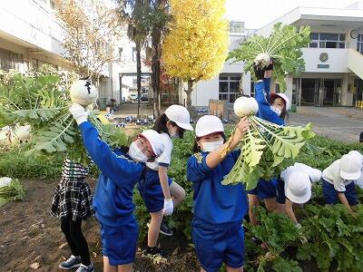 12月11日(金) 2年生 大根・かぶ収穫(学校ファーム)