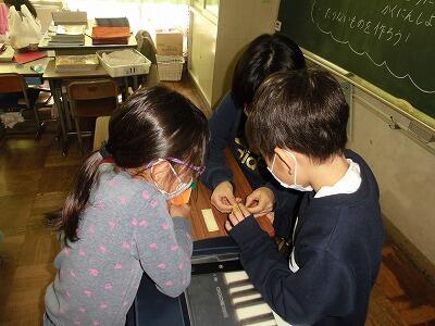 3年生の理科では、教具を使って意欲的に取り組んでいます。