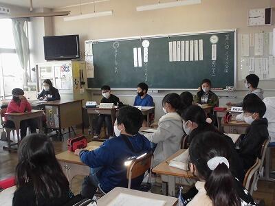 6年生の音読発表会に向けて、役割分担・読み方等を打ち合わせて練習しているようすです。