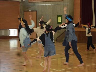 今日の昼休みに、ダンスクラブがダンス発表会を行いました。新型コロナウイルス感染症拡大防止のため発表会を見に来てよい学年を1・6年としました。本番は応援が50人くらい集まり、間隔を開けてダンス発表会を応援しました。