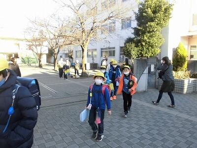 本日、一斉下校がありました。これまでの登校の反省をし、3学期に向けて安全で、仲のよい班で通学するために行っています。校長先生から安全に関するお話をいただき、班ごとに反省と今後に向けての確認をして下校しました。