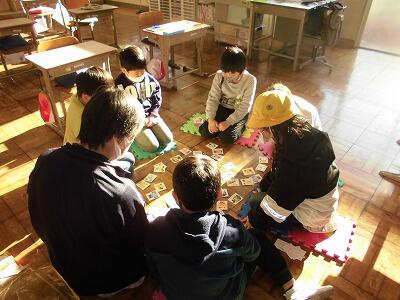 英語では、みんなが楽しく発音練習やクイズを楽しみながら行っていました。