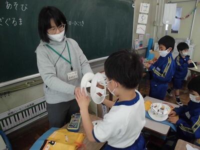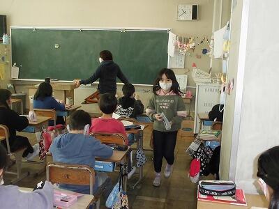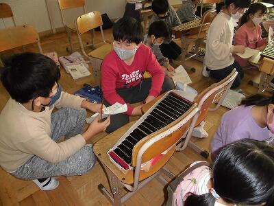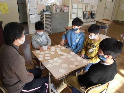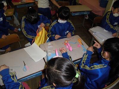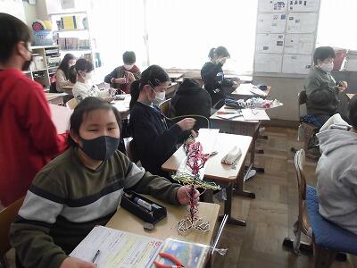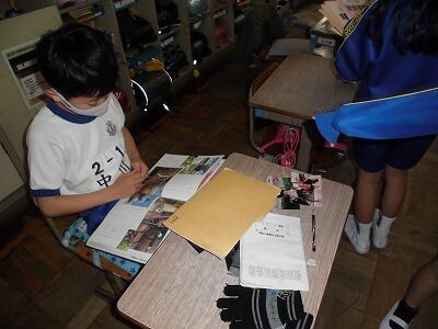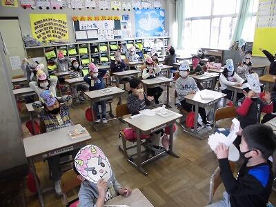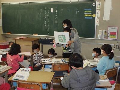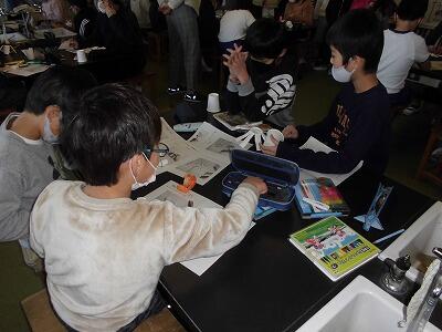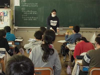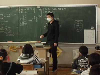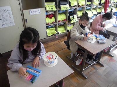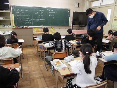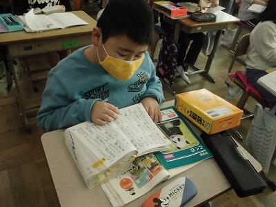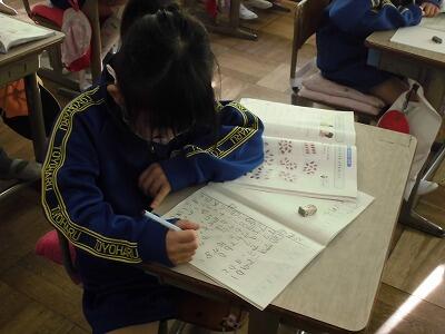 算数の授業です。3800の説明の仕方を考えました。練習問題で2400について同じように考えました。                                  授業では、定規を使ってきれいにノートを書きます。うっとりするくらいきれいです。                                                                         豆まきの準備かしら?今年の節分は2月2日です。2月3日は立春、春の始まりです。                                                                             これは理科の授業です。「骨と筋肉」のお勉強で、自分の身体の関節を使って学びます。                                                     さすが高学年、形を工夫して生き物を作っていきます。                                                                                                            距離に気をつけながら、交互に練習します。