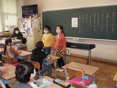 今日は、朝に始業式を放送で行いました。代表の2年生児童の3学期の抱負、校長先生のお話、生徒指導主任から1月の生活目標のお話がありました。校長先生からは、3学期に一人一人がしっかりと目標を立てて今の学年の確実にやっていくこと、あいさつに力を入れることにプラスワンとして「ありがとう」を入れ、多くの人に色々な場面で「ありがとう」が言えありがとうが響き合う豊春小学校にしましょうとお話がありました。