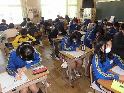 本日、2,3校時に全学年学力テストをおこないました。これまで頑張ってきた学習の成果がどのくらいなのかを知るよい機会です。結果は、ご家庭にも後日お知らせします。自分の100%の力を発揮できるといいですね。