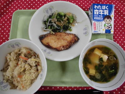カンパチのみそマヨネーズ味が濃く、ごはんが進んでとってもおいしかったです。また白玉雑煮はしょうゆ味で白玉がやわらかくもちもちしていてほっぺたが落ちそうでした。おいしい給食をいつもありがとうございます。