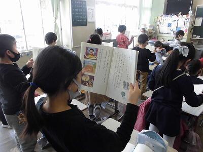 みんな自分のペースで飛沫に気をつけ小さい声で音読をします。