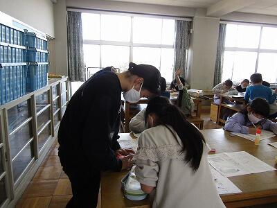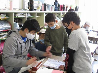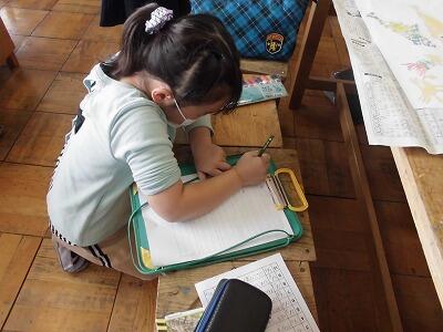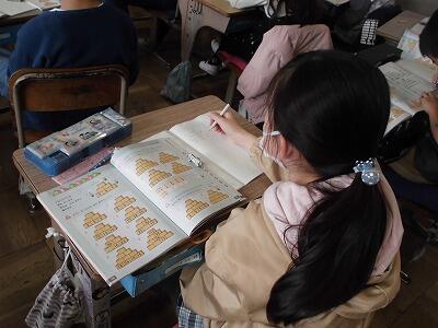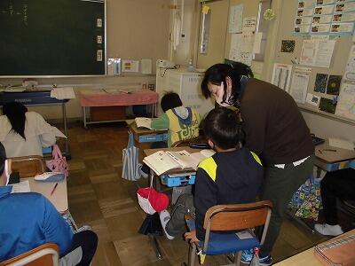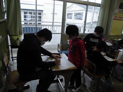 2,3年生は、まとめの問題に真剣に取り組み、わからない児童は担任の先生に聞きに行っている様子が見られました。