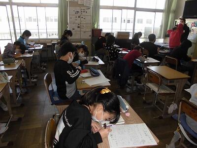 令和2年度も残すところあと一週間となりました。今のクラスともお別れです。今各クラスではお別れ会の準備や、イベントの企画などをしています。思い出に残るクラスの行事になるといいですね。また、学習もラストスパート!終わっていないドリルやプリントをやったり、授業のまとめを行ったりして、最後の振り返りをしています。