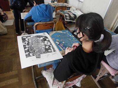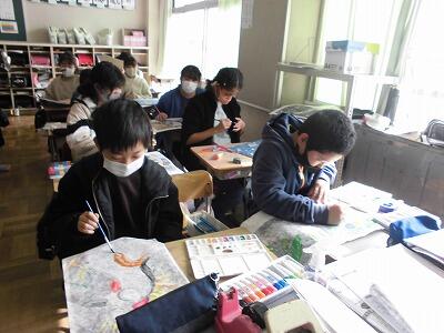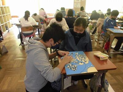 5年生の図工では、とてもすばらしい作品ができており、みんなが集中して作業をしていました。