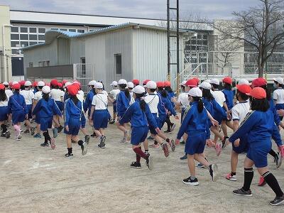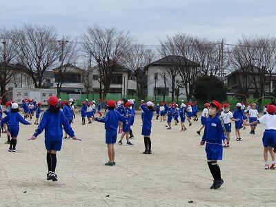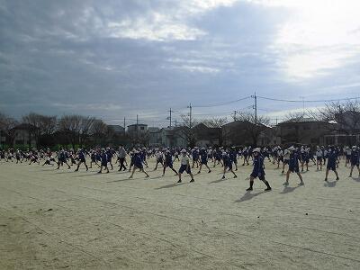 みんなで行進をして教室にもどりました。今年最後の体育朝会はみんな頑張ることができました。