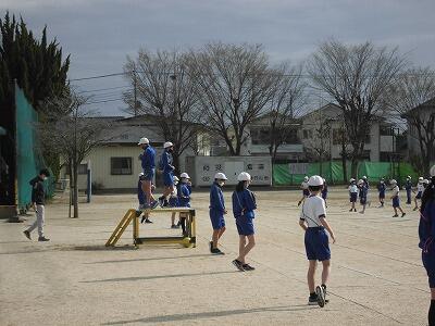 6年生の体育では、走り高跳びを行っていました。助走を工夫して少しずつ跳べるようになってきました。今日は110㎝に挑戦している子がいました。