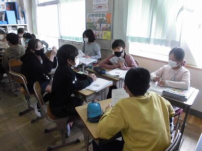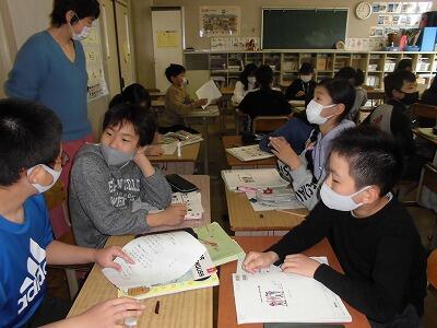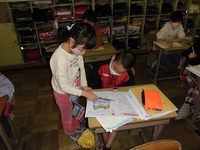 4年生は授業を真剣に聞きながら、進めていました。自分の意見や発表がとても上手くなっています。また、友達同士での教え合いも定着してきています。