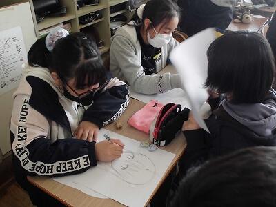 第1弾は、3月のはじめに1~5年生から、6年生の似顔絵を描いた色紙のプレゼントを行いました。