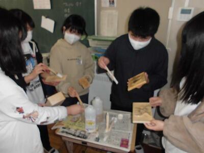 3年生の図工では、最後のニス塗りを行って仕上げ作業に入っていました。すばらしい作品を仕上げることができました。