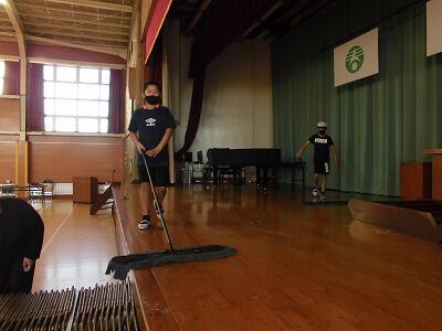 いよいよ6年生の卒業まであと1日。今日は5年生が6年生のために卒業式の準備をとても一生懸命に頑張っていました。お世話になった6年生が最高の卒業式になるよう、体育館やろうかの隅々まできれいに掃除をして気持ちよく迎える準備をしてくれました。
