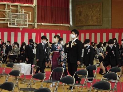 卒業生は緊張した面持ちで登校し、やる気と自信に満ちあふれた表情で朝の練習、入場、本番をすばらしい態度で臨むことができました。一年間、新型コロナウイルス感染症拡大防止措置により思うような学校生活が送れない中でも、主体的に活動し、学校のために多くのことでリーダーシップを発揮してくれました。