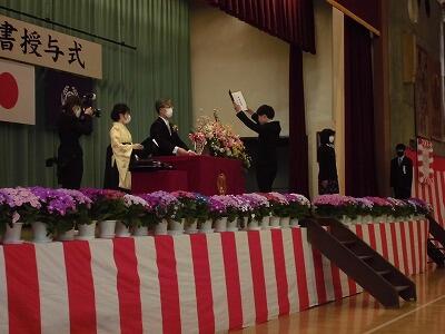 表彰では、一人一人名前を呼び、しっかりと校長先生から授与されました。表彰された皆さんおめでとうございます。