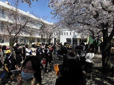 また、卒業生のために、正門前の桜も一斉に花が開き卒業生の旅立ちを祝っているかのようです。