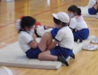 今日の朝は体育朝会。1年生は上級生の姿を見て学びました。