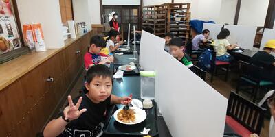 ハイキング後は林間学校最後のご飯です。群馬県原田農園さんでカレーをいただきます。